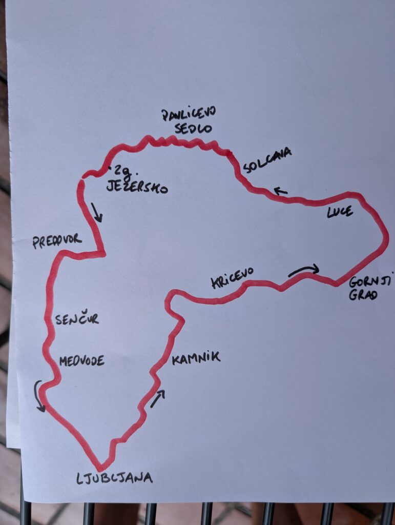 Prise récemment, cette route sur les hauteurs sinue enormément et passe dans de beaux endroits, tout en étant très peu fréquenté. Faites une pause à Sinji Vrh pour la vue panoramique, un repas ou un café. A l’arrivée, un joli plateau avec personne et une vue sur les Alpes.