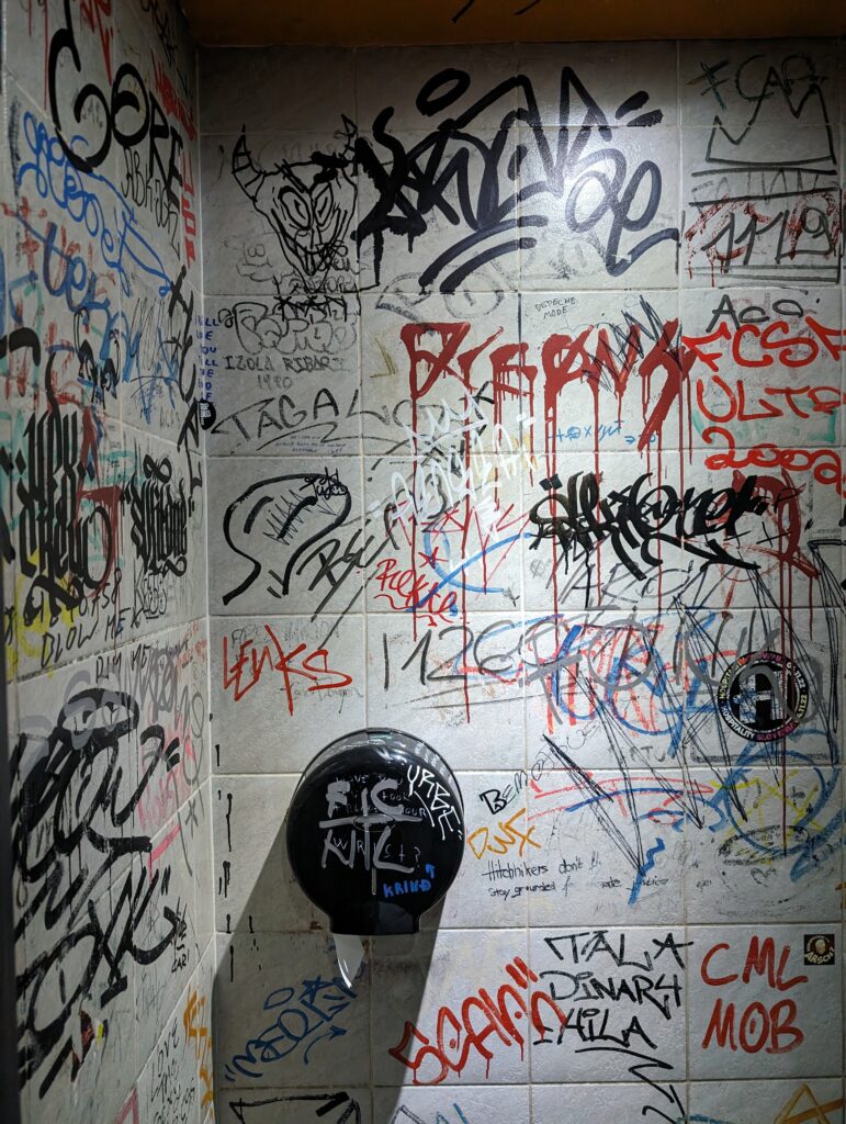 Dans les toilettes d’un bar dans la rue Trubarjeva.