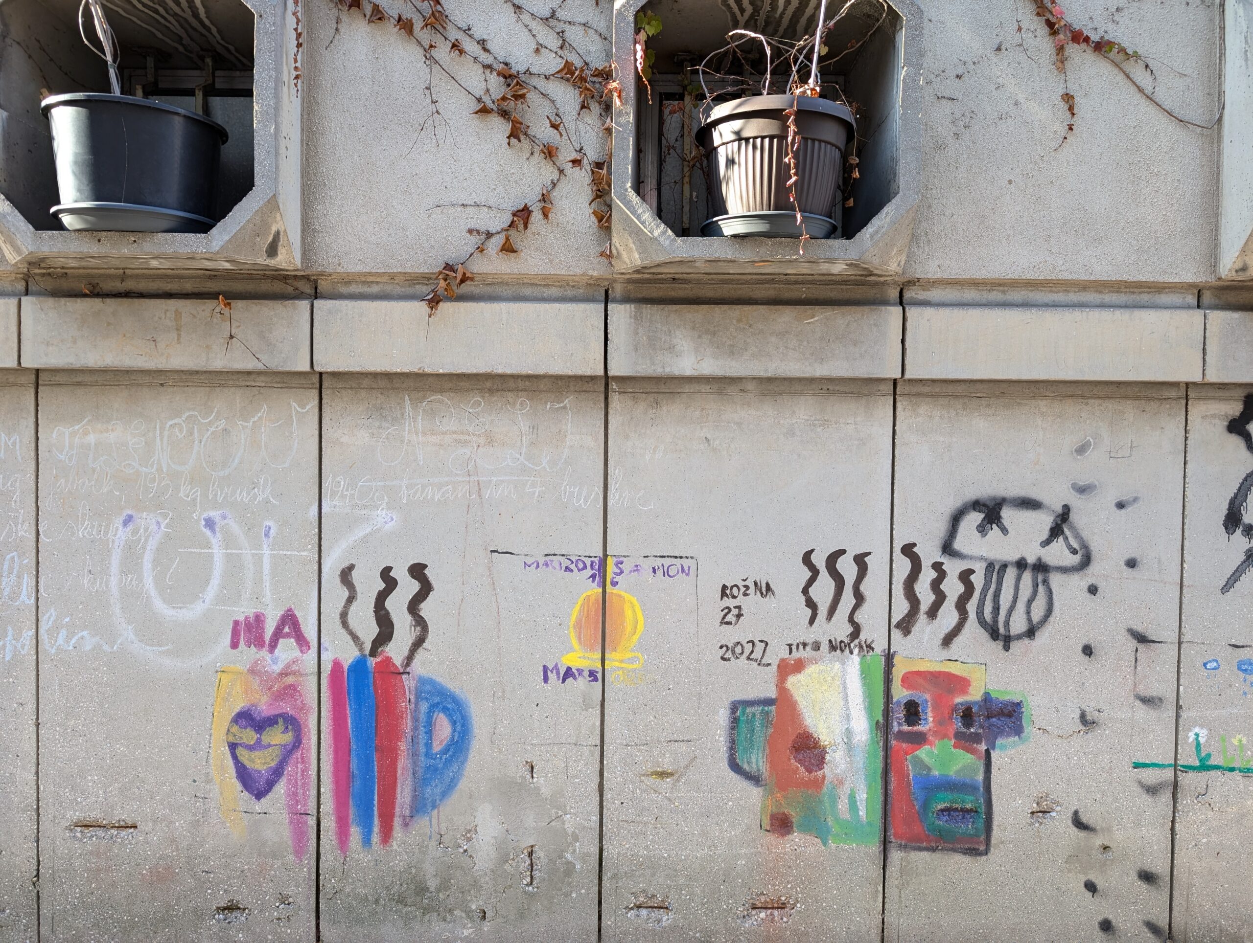 Sortez de Metelkova dans la rue Masatykova cesta et vous verrez de « grands tableaux urbains » sur les murs qui encerclent Metlekova. Tous les touristes les loupent.