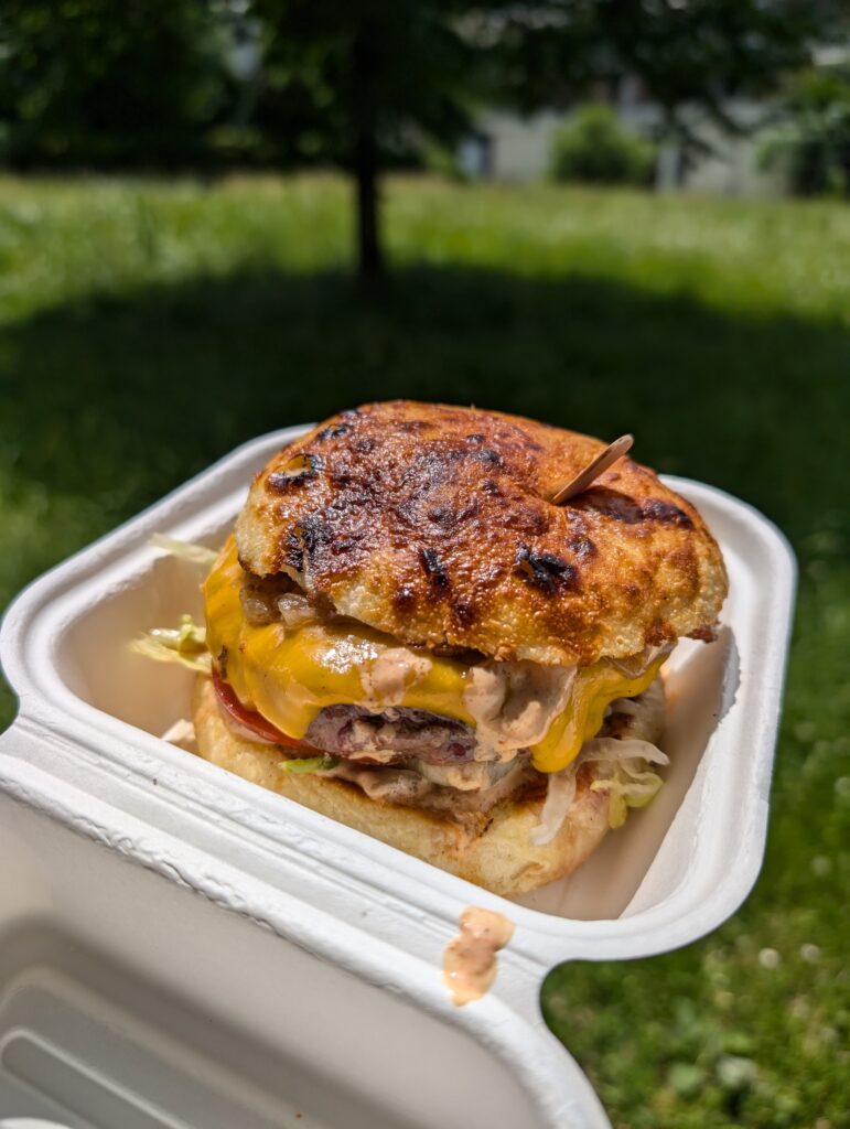 Un nouveau venu avec cette petite cabane située au fond du jardin du propriétaire qui prépare ses burgers sur la plancha de son jardin. C’est bon mais il manque une terrasse pour s’installer confortablement même s’il y a des bancs ombragés pas loin. A recommander si vous logez dans le coin (voir l’article Ljubljana : Les meilleurs quartiers pour se loger en 2025).