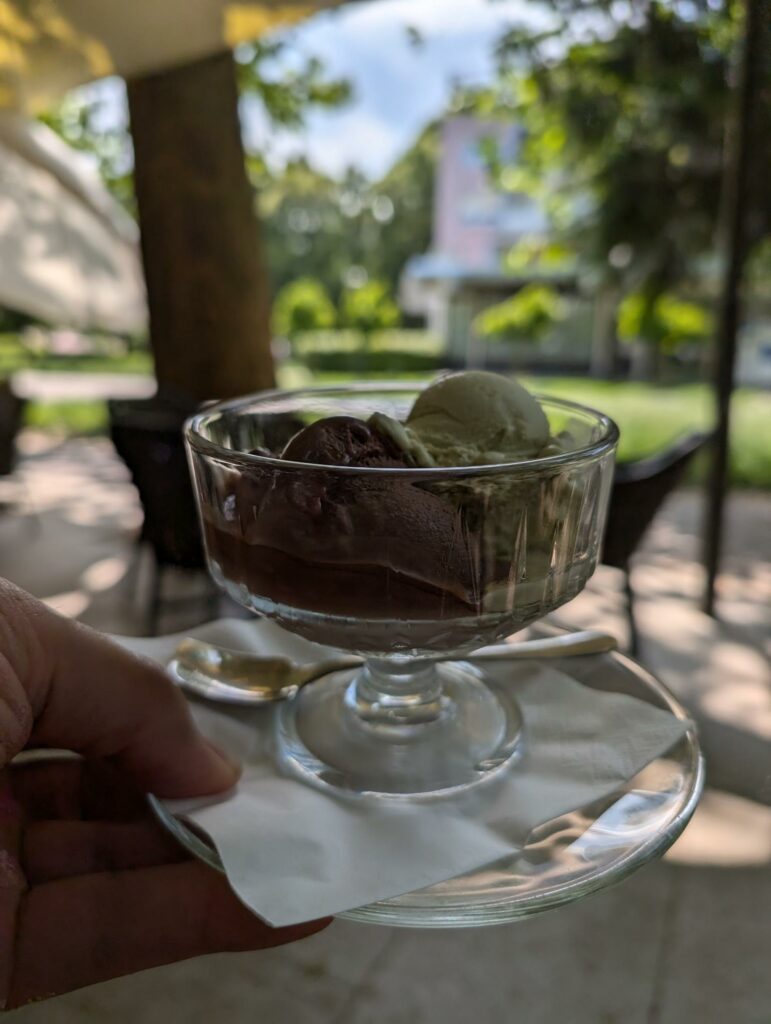 Ensuite, pour le café ou une glace, filez à la terrasse très agréable de la patisserie Joni. Vous y découvrirez la vraie vie de quartier slovène. N’oubliez pas que les glaces ne sont pas lus chères servies en terrasse.
