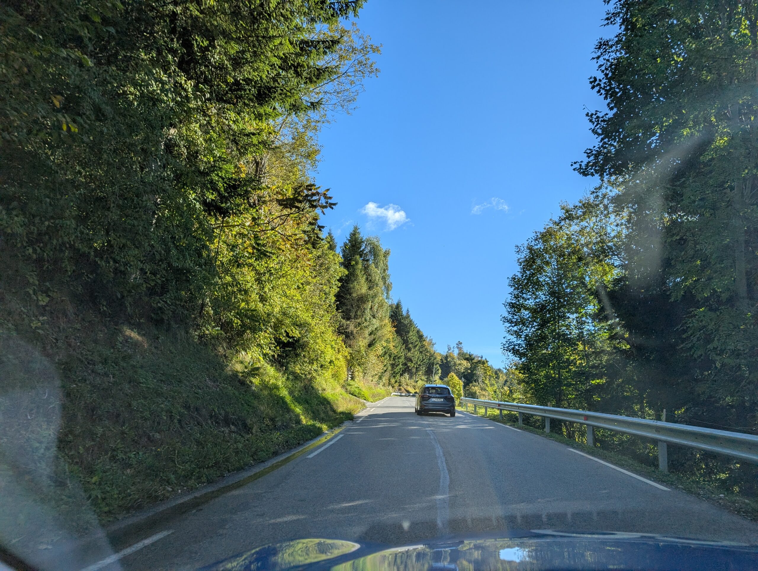 les villages demarkovo – Studenca – Podlom. Cette petite route est à 40% en graviers et en forêt (très bien entretenue) et à 60% en asphalte. On y roule à 35 km/h. C’est vraiment hors des sentiers battus et on y découvre la vraie campagne slovène.