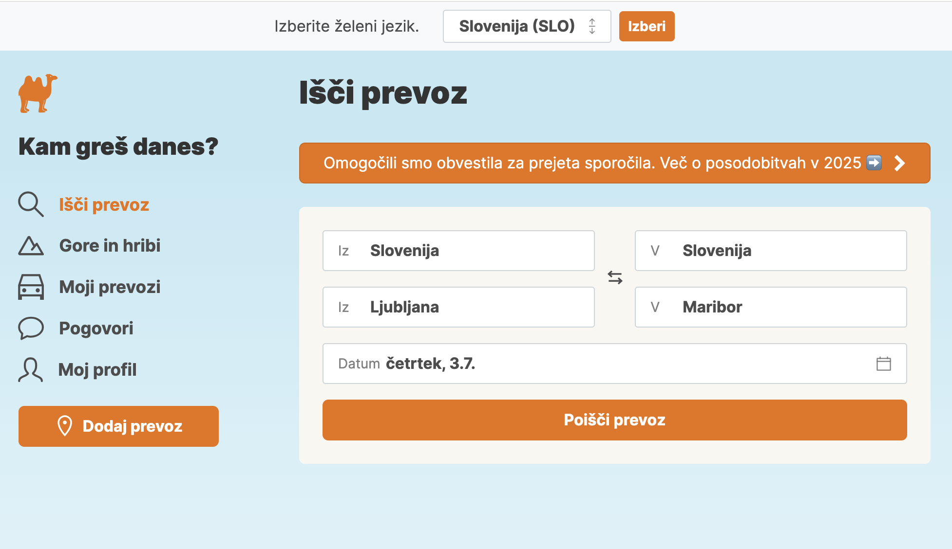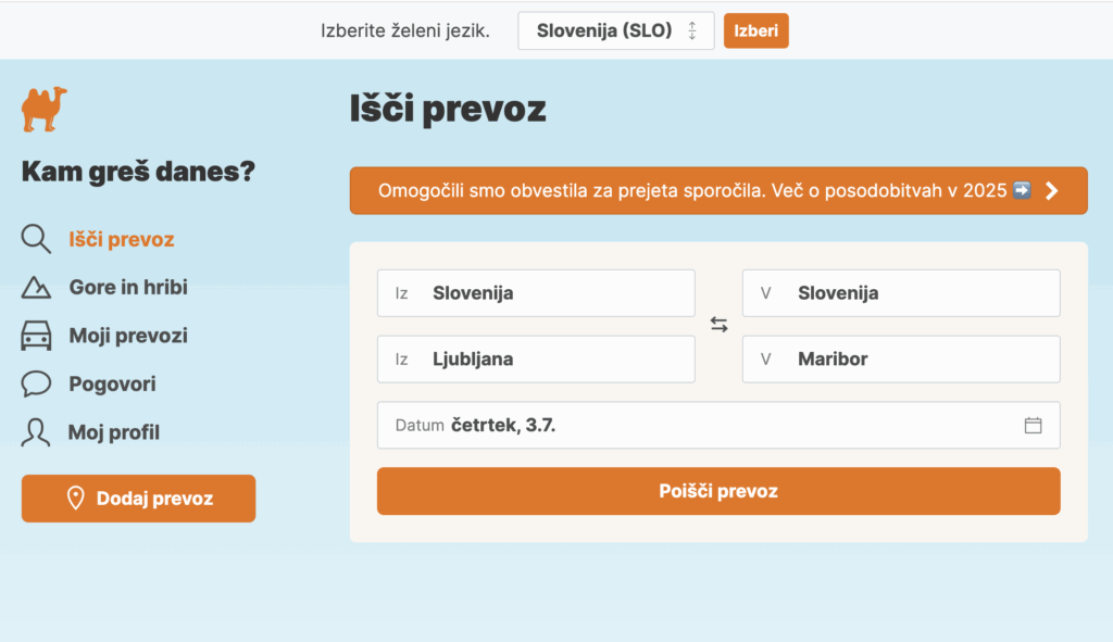 De nombreux trajets sont proposés chaque jour sur le site de covoiturage slovène prevoz.org.