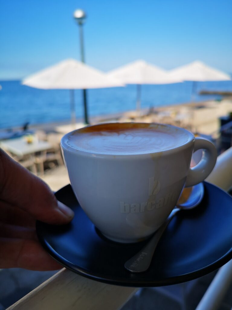 Comme je l’explique souvent, la plage en Slovénie ne fonctionne pas comme celle que vous connaissez en France. Vous allez y trouver de très nombreux cafés qui sont juste au bord de l’eau. Ils servent de délicieux cafés et cappuccinos en raison de la proximité et de l’influence de Trieste sur la Slovénie (port historique du café). Comme les locaux, vous devez vous y attabler une à deux fois par jour et y rester longtemps (On ne vous poussera pas à partir en vous apportant l’addition).