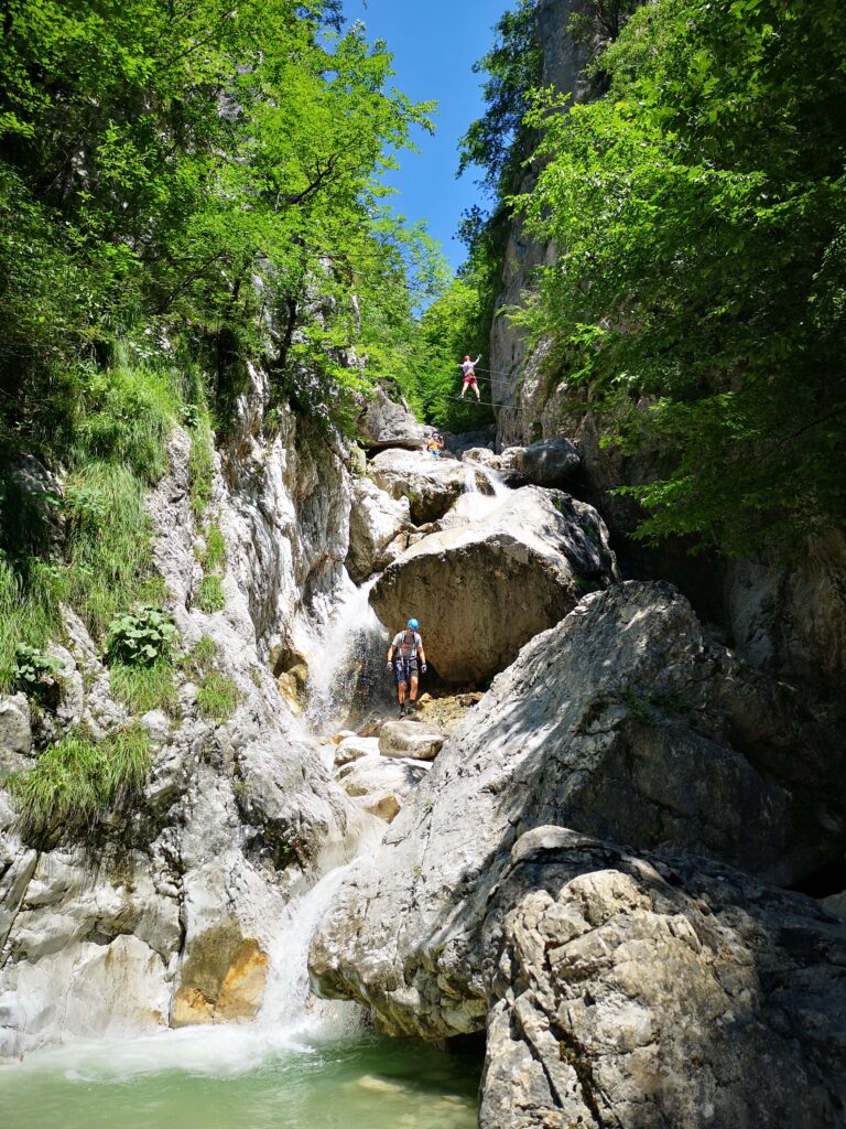 Cette via ferrata que j’ai faite l’an dernier se déroule le long de la rivière Hladnik, bien au frais car exposée au nord. Pas facile, on remonte la rivière avec le système de la via ferrata, un harnais et des mousquetons. On y passe un très bon moment mais c’est aussi franchement sportif. La via ferrata se trouve à côté de la station de ski de Kranjska Gora, au nord est de la Slovénie.