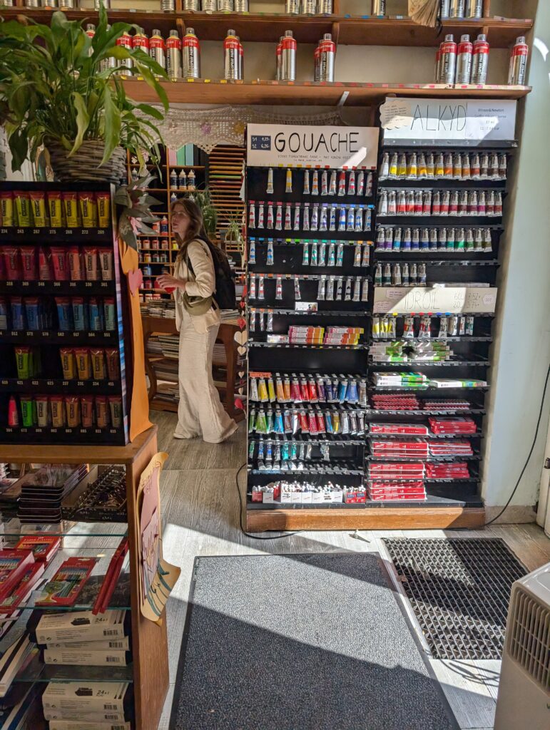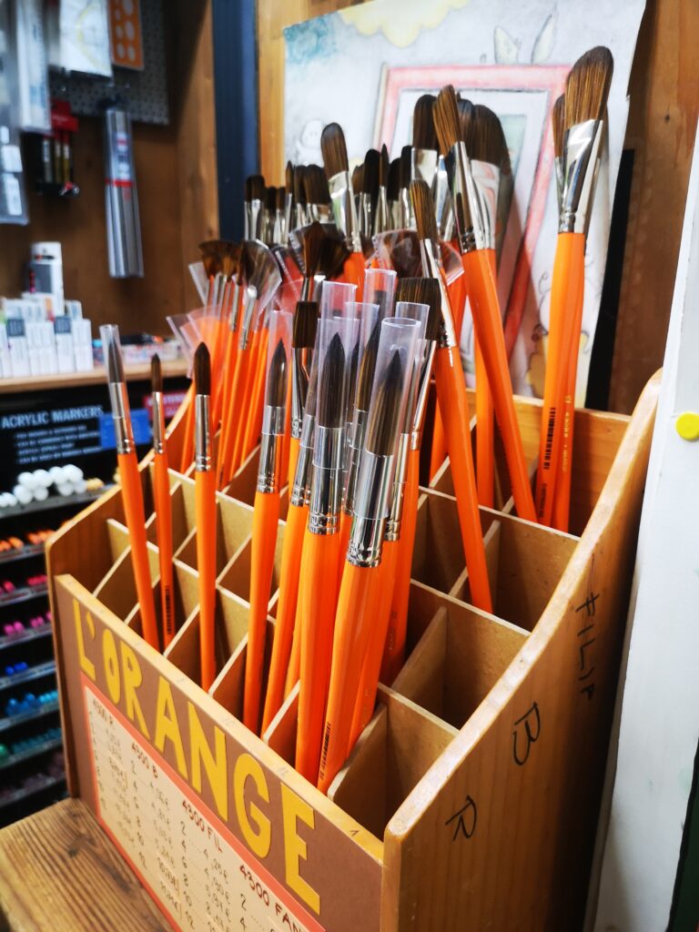 Si vous aimez dessiner, peindre ou créer, il y a ce petit magasin d’art sur la place de la révolution française. Rien d’exceptionnel mais je vois bien que le magasin existe depuis plus décennie et est fréquenté, c’est donc que l’offre est bonne. Même si vous ne le faites pas d’habitude, vous pourriez vous acheter un petit carnet pour dessiner votre voyage, les paysages et les bâtiments slovènes, c’est très agréable dans les montagnes slovènes ou à la terrasse d’un café slovène, bien plus reposant que de se plonger dans son smartphone. Parfait pour des vacances.