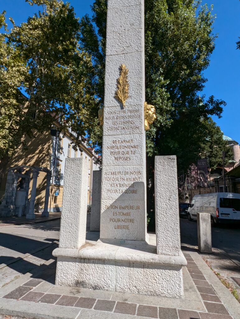Ce monument surprise soulève bien des questions quand on est français : un monument en l’honneur de Napoléon Bonaparte, posé au centre de la Trg francoske revolucije à Ljubljana. Il n’est vraiment pas courant de trouver de tels monuments en dehors de France. Pourquoi un tel hommage à l’empereur français en plein cœur de la capitale slovène ?