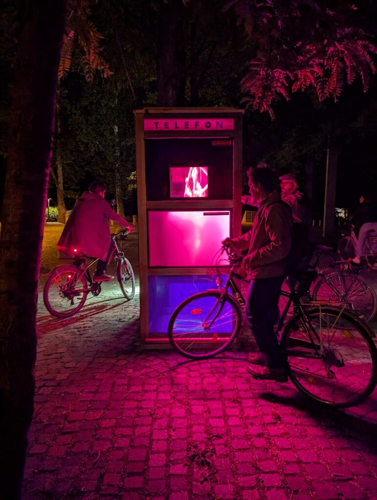 Pas de mapping géant ou d’effusion de lumières, pour coller à l’atmosphère de Ljubljana, Svetlobna Gverila privilégie une approche intimiste avec des installations souvent discrètes qui invitent les Ljubljanais à redécouvrir, avec un oeil nouveau, des parties du centre Ljubljana peu fréquentées. Je fais toujours un tour complet des installations le soir, en juin. Suivre ces installations, c’est aussi découvrir le Ljubljana des passages et des petites ruelles, une visite complémentaire à une visite classique.