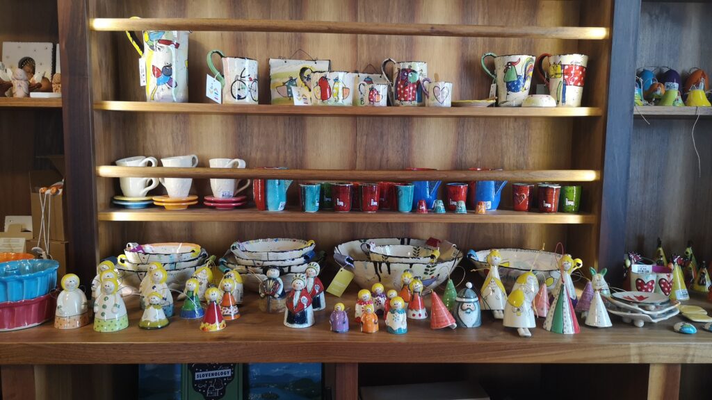 Une petite boutique de souvenirs se trouve dans la maison Provost. C’est traditionnel et bien présenté, rien à redire. On y trouve de nombreux objets en bois slovènes. Donc, pas de problème avec le bar et le magasin de souvenirs mais la suite se corse.