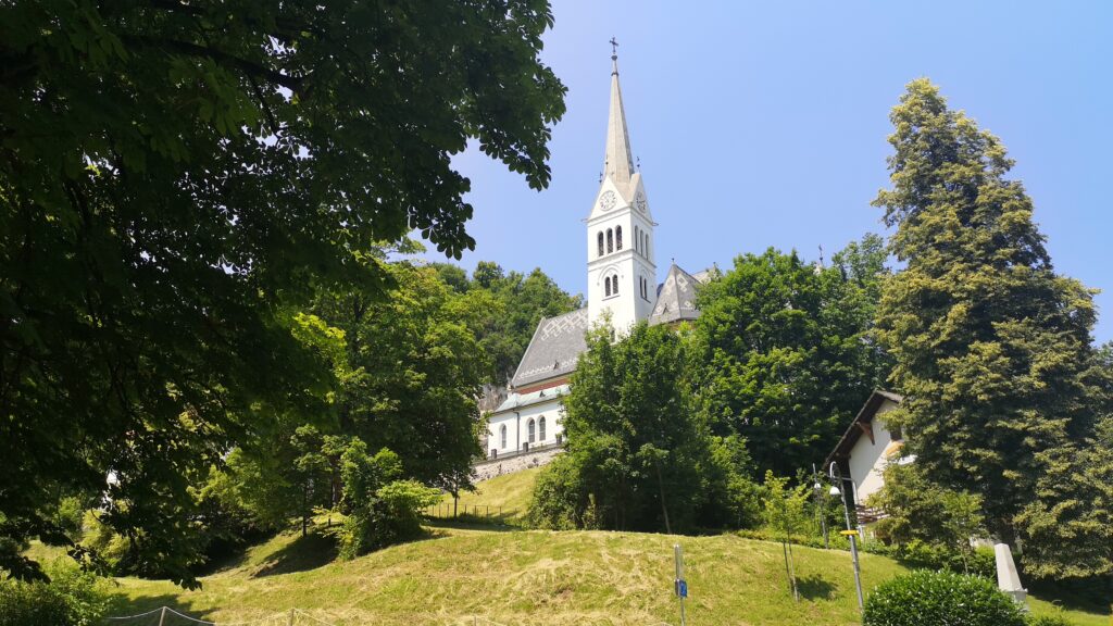 Si vous regardez bien, vous verrez au pied du château de Bled une église blanche élégante : la Župnijska cerkev sv. Martina, l’église paroissiale Saint-Martin. Un endroit rarement fréquenté par les touristes qui mérite d’être tout autant visité que la petite église au milieu de l’île.