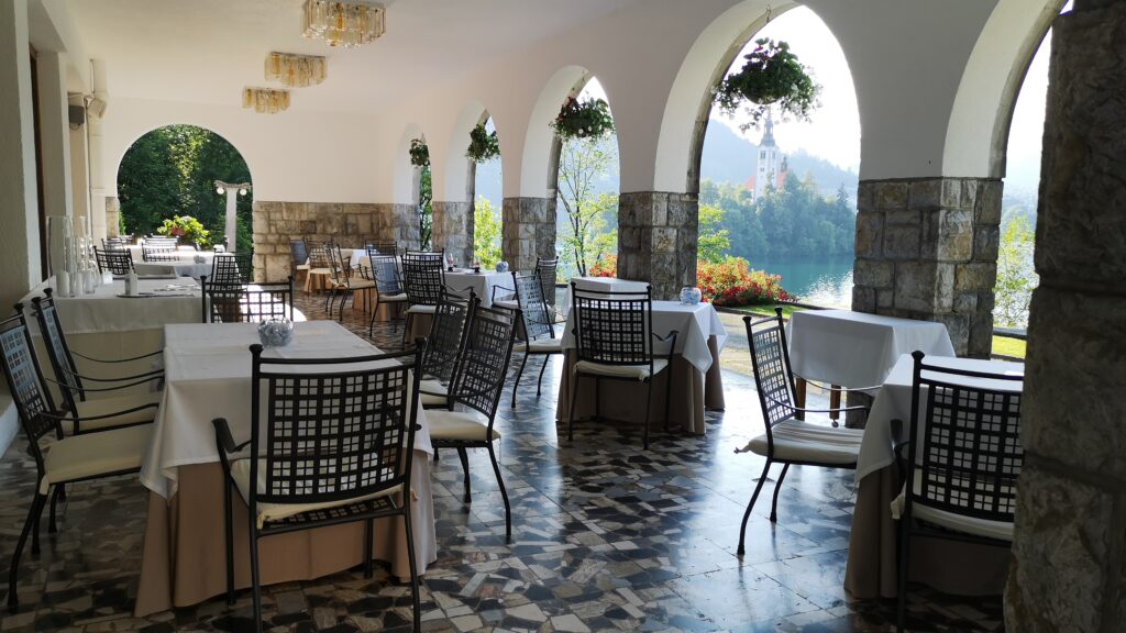 Je le trouve agréable avec ses tables à l’ombre des arbres et sa douceur typiquement slovène. Les prix sont plus élevés qu’ailleurs mais restent honnêtes. Ils ne sont pas totalement gonflés comme ils pourraient l’être à un endroit aussi touristique. Si vous avez une petite faim, vous y trouverez des pâtisseries locales et notamment des Potica, le dessert traditionnel slovène auquel vous devez goûter. Vous pourrez aussi prendre une glace.