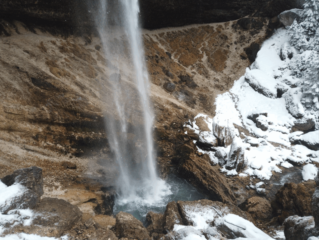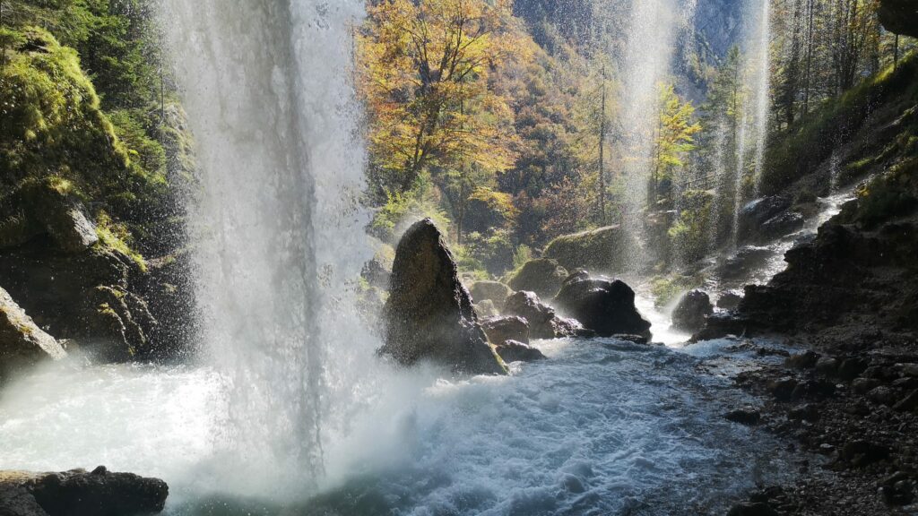 Un sentier pentu permet d’accéder à la cascade inférieure en 10 minutes depuis la route en graviers. En s’aventurant un peu, on passe derrière le rideau d’eau, une perspective rafraîchissante en été.