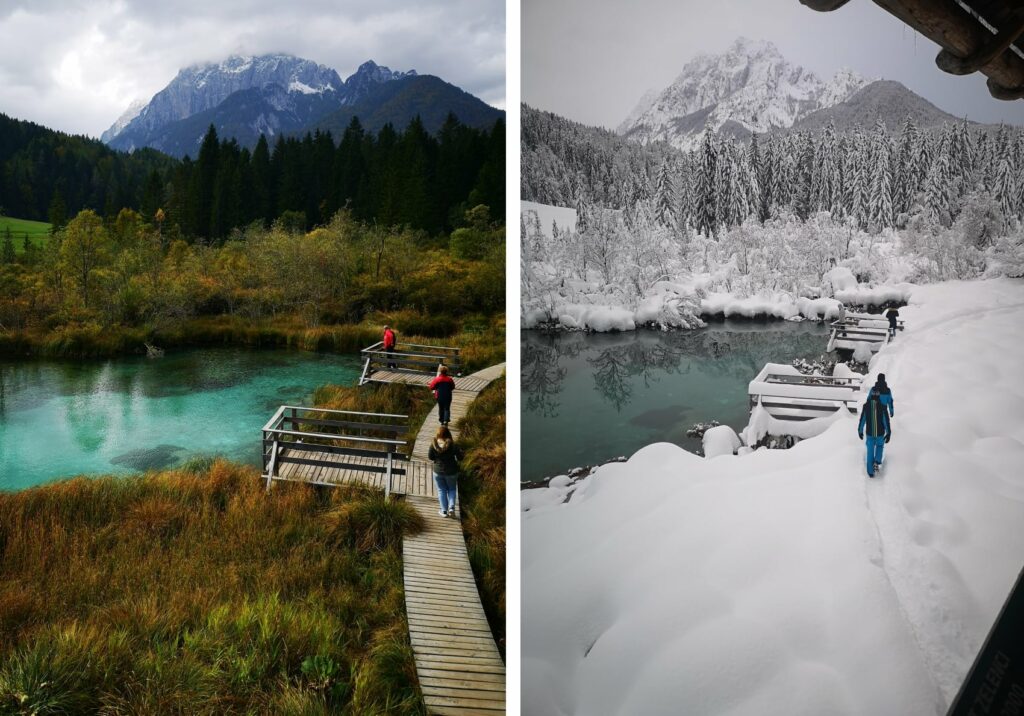L’une des raisons pour laquelle j’habite en Slovénie est qu’il y a plein de choses à y faire et en plus, que ces beaux endroits changent totalement au fil des saisons. Entre le printemps/été, les couleurs verdoyantes de automne et la neige de hiver, les beaux endroits se modifient totalement et on ne s’en lasse jamais. On peut retourner au même endroit quatre fois dans l’année et on le découvre d’une façon toujours différentes.