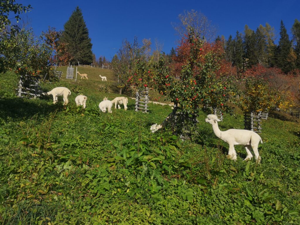Je les ai rencontré par hasard en explorant à fond les trois vallées de Logarska dolina. En grimpant une route sinueuse sur les hauteurs de Robanov Kot, je suis tombé sur cette ferme d’altitude avec des alpagas qui se promenaient paisiblement. Je n’en ai pas vu ailleurs en Slovénie.