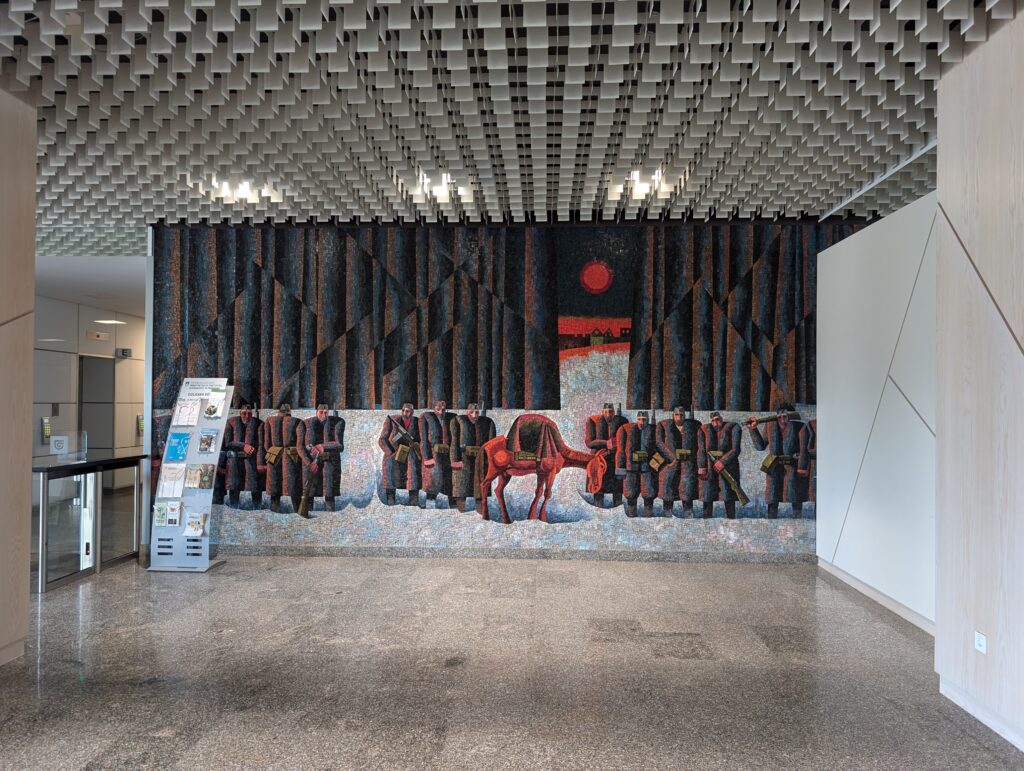 Vous décourirez en y pénétrant une mosaïque de 7 mètres réalisée par l’artiste slovène Ive Šubic, lui-même survivant de la bataille. Cette œuvre poignante dépeint les horreurs du conflit, rendant hommage aux victimes et aux combattants .