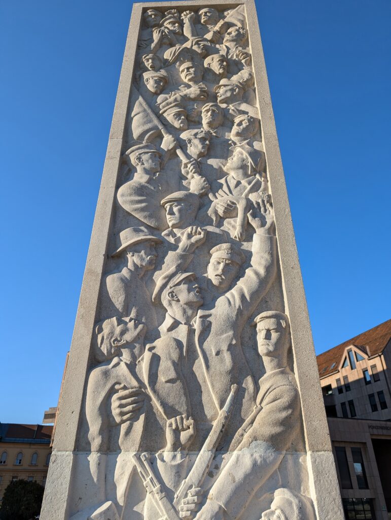 • À sa base, vous trouverez une frise en bronze qui illustre les souffrances des habitants pendant l’occupation.