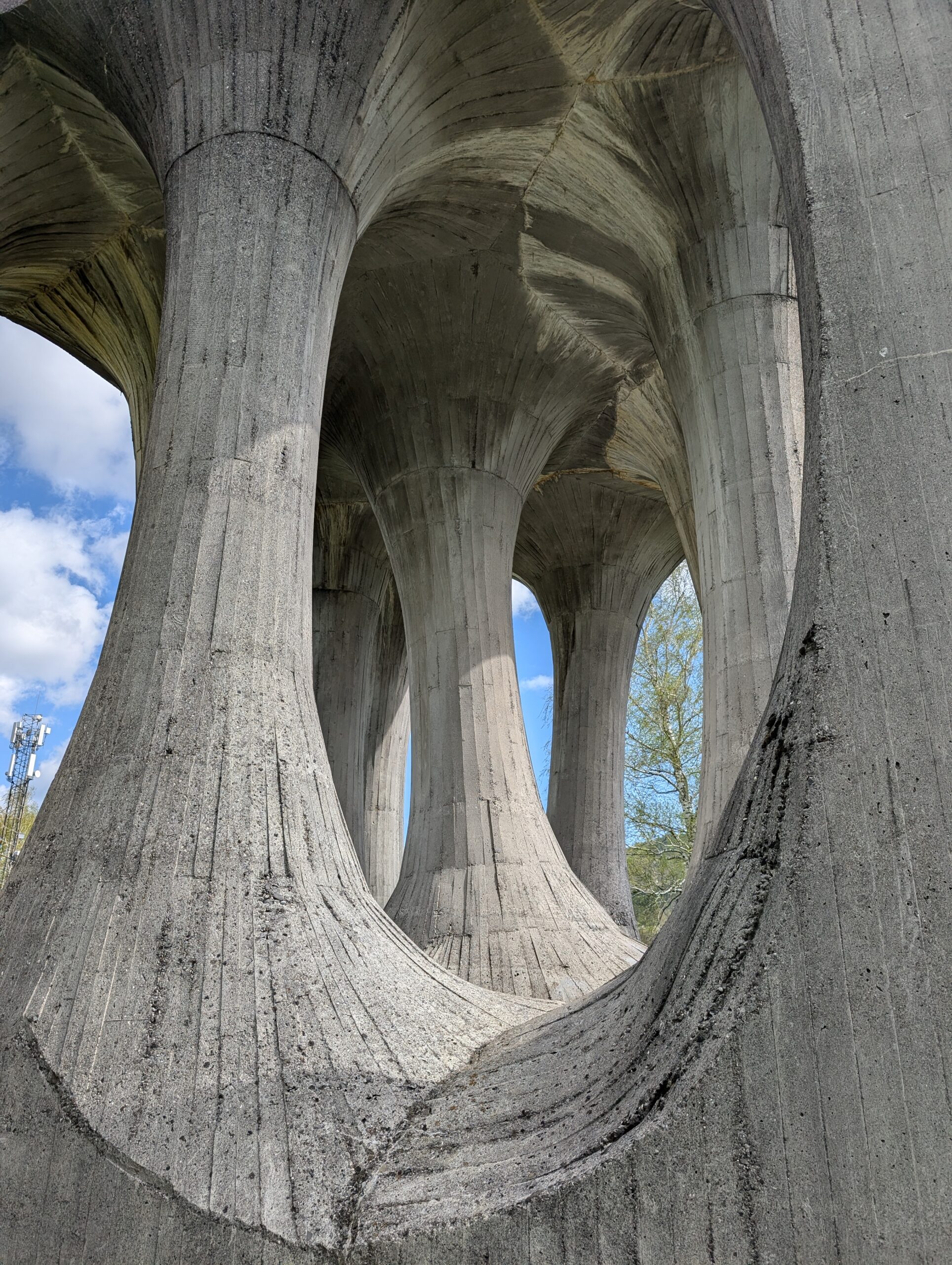 Ce sont de véritables sculptures abstraites, parfois monumentales, aux formes futuristes ou brutalistes. Ces oeuvres sont souvent captivantes de par leur contraste avec la nature et leur aspect futuriste vintage.