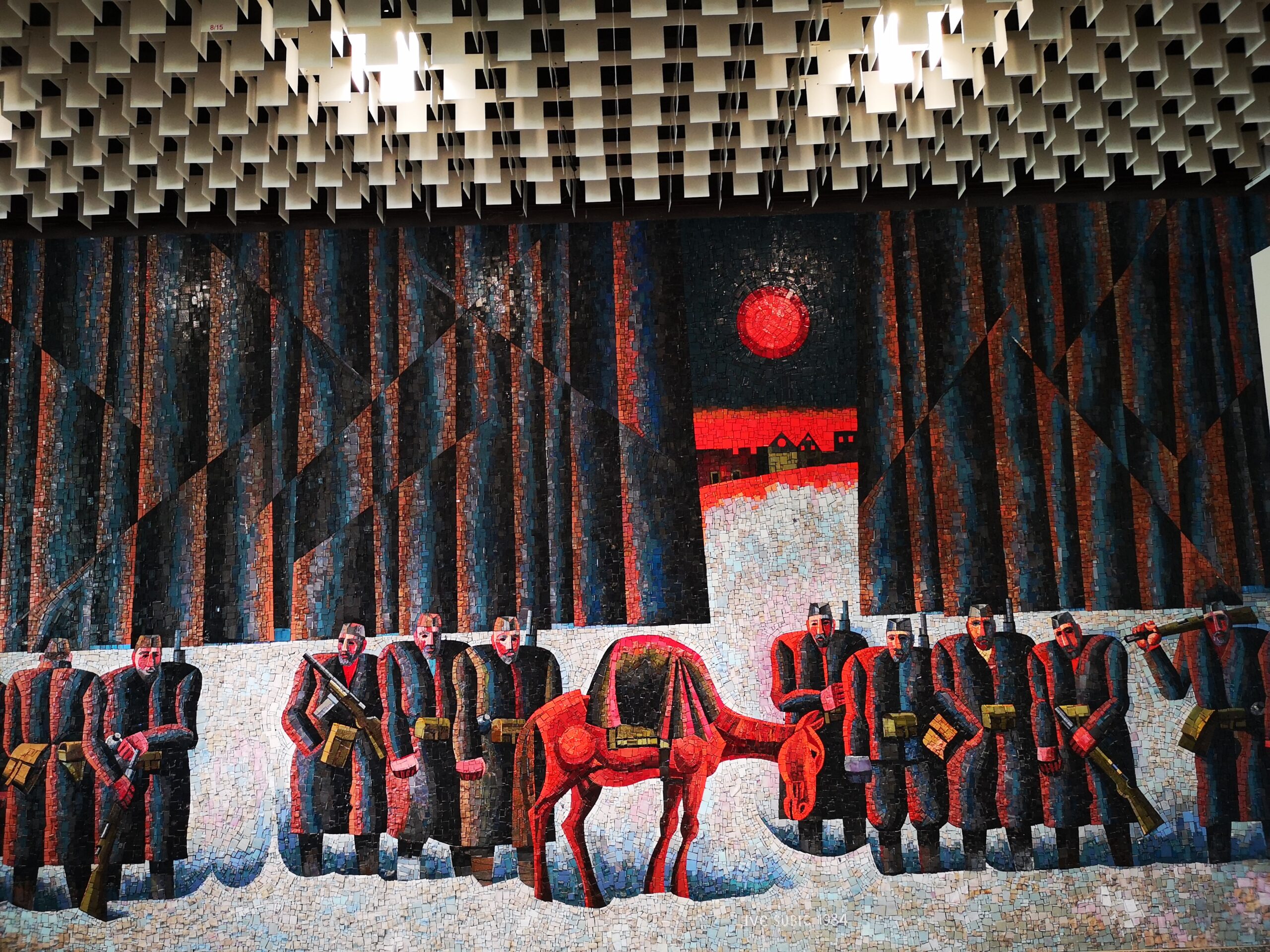 Vous décourirez en y pénétrant une mosaïque de 7 mètres réalisée par l’artiste slovène Ive Šubic, lui-même survivant de la bataille. Cette œuvre poignante dépeint les horreurs du conflit, rendant hommage aux victimes et aux combattants .