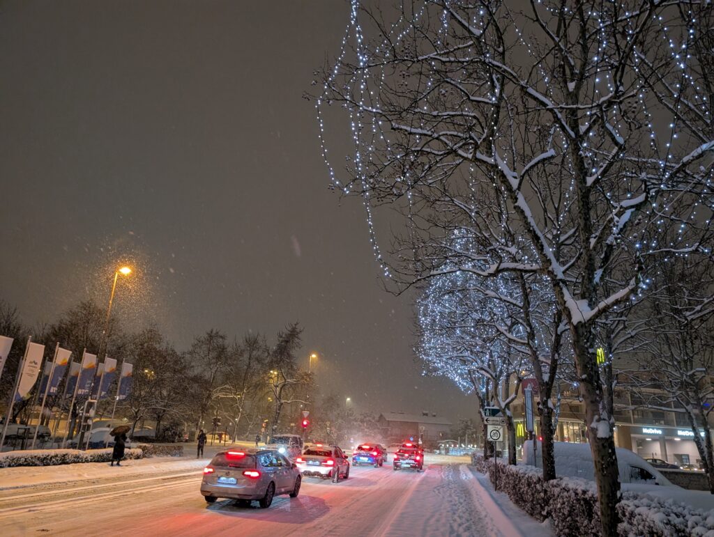 Il fait froid de décembre à février en Slovénie et les Slovènes ont l’obligation de mettre des pneus hivers sur leur voiture. Les touristes en visite font eux comme ils veulent. Il faut surtout comprendre que les Slovènes déneigent très bien les routes, avec une grande efficacité et qu’avoir une route toute blanche comme celle de ma photo est en fait très rare.