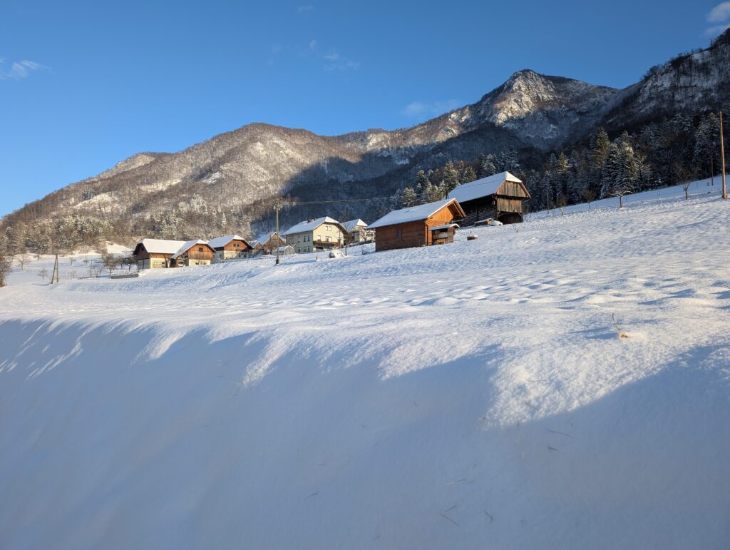 Ce fabuleux village se rejoint facilement à pied en hiver. La route pour rejoindre le point de départ est toujours bien dégagée. Une fois arrivé, vous aurez une vue sur le Triglav, le plus haut sommet slovène et sur tout le parc national du Triglav. Si vous cherchez une rando hivernale sans difficulté technique, c’est celle là ou velika planina. L’article donne des conseils pour une rando en été mais ce sont les mêmes pour l’hiver.