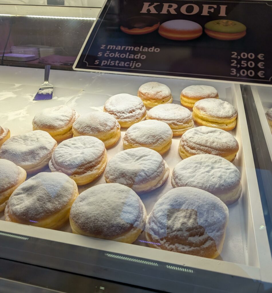 Les Slovènes aiment les beignets et pendant l’hiver, les meilleurs sont à Ljubljana. Ils se trouvent au bout d’une des plus belles rues de Ljubljana, la rue Trubarjeva. Alors si vous avez une petite faim pendant votre journée, faites-y un tour. Vous pouvez les déguster dans le café ou les prendre à emporter.