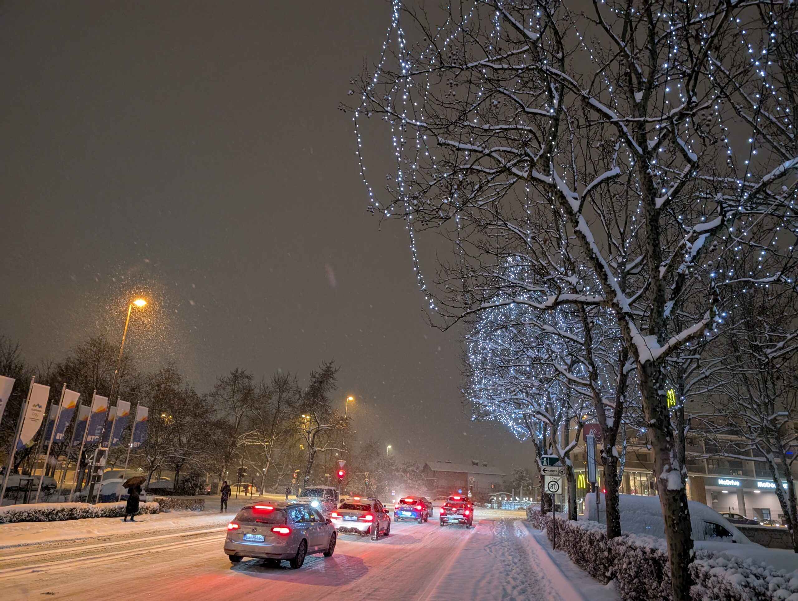 Il fait froid de décembre à février en Slovénie et les Slovènes ont l’obligation de mettre des pneus hivers sur leur voiture. Les touristes en visite font eux comme ils veulent. Il faut surtout comprendre que les Slovènes déneigent très bien les routes, avec une grande efficacité et qu’avoir une route toute blanche comme celle de ma photo est en fait très rare.