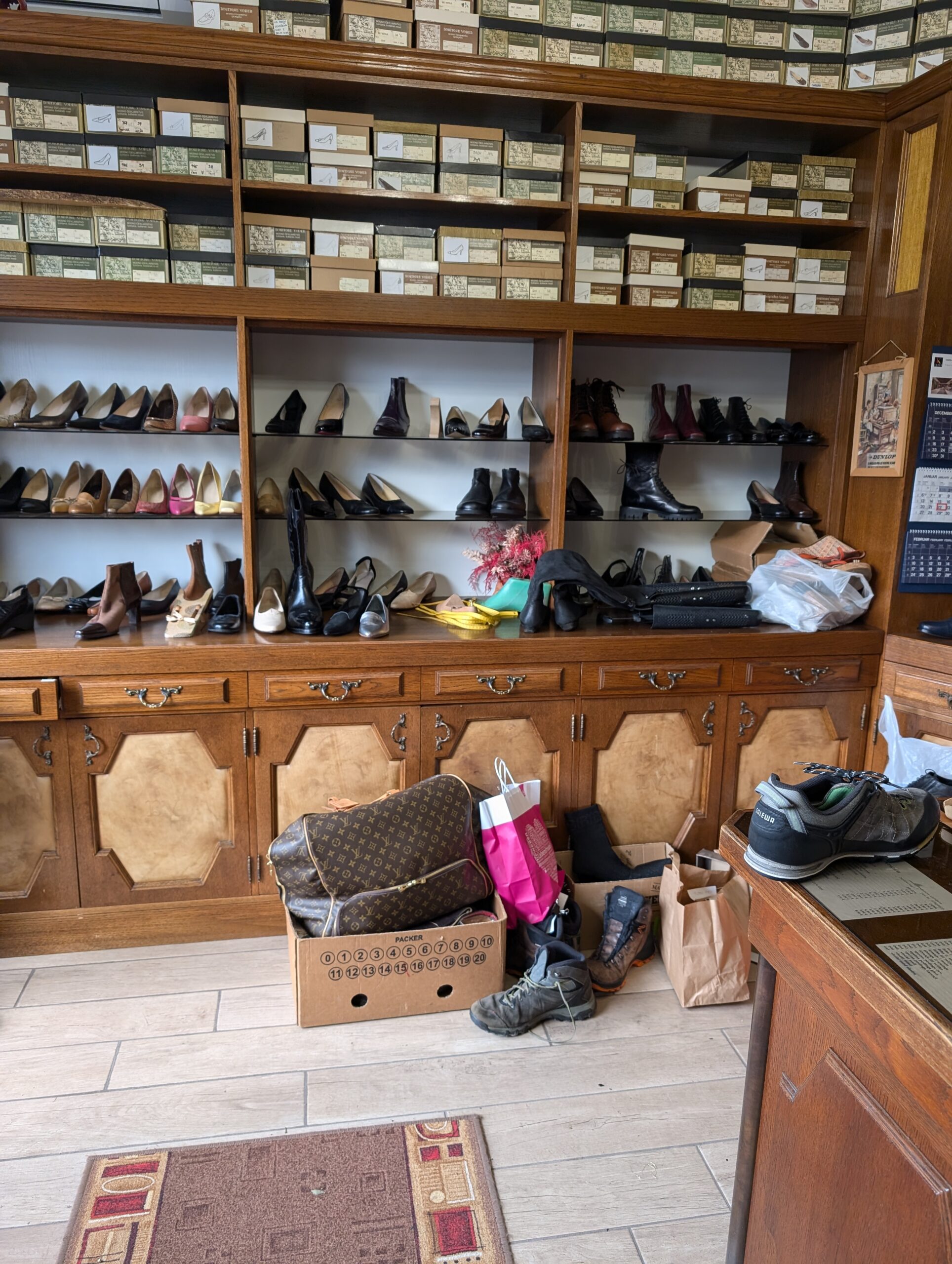J’y fais réparer mes chaussures, vous voyez d’ailleurs une de mes chaussures pour la rando en Slovénie sur l’établi sur la photo en haut à gauche.