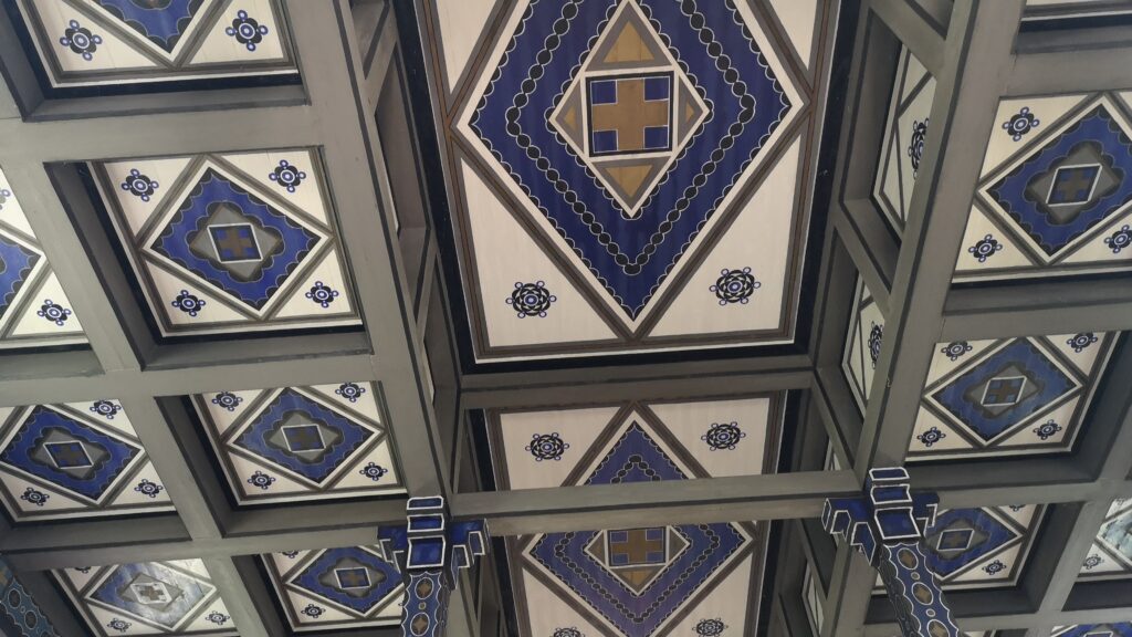 Style : L’église mêle le style Art nouveau à des éléments traditionnels, avec une façade ornée des armoiries des provinces de l’Empire austro-hongrois et un clocher portant l’inscription « PAX » (paix).