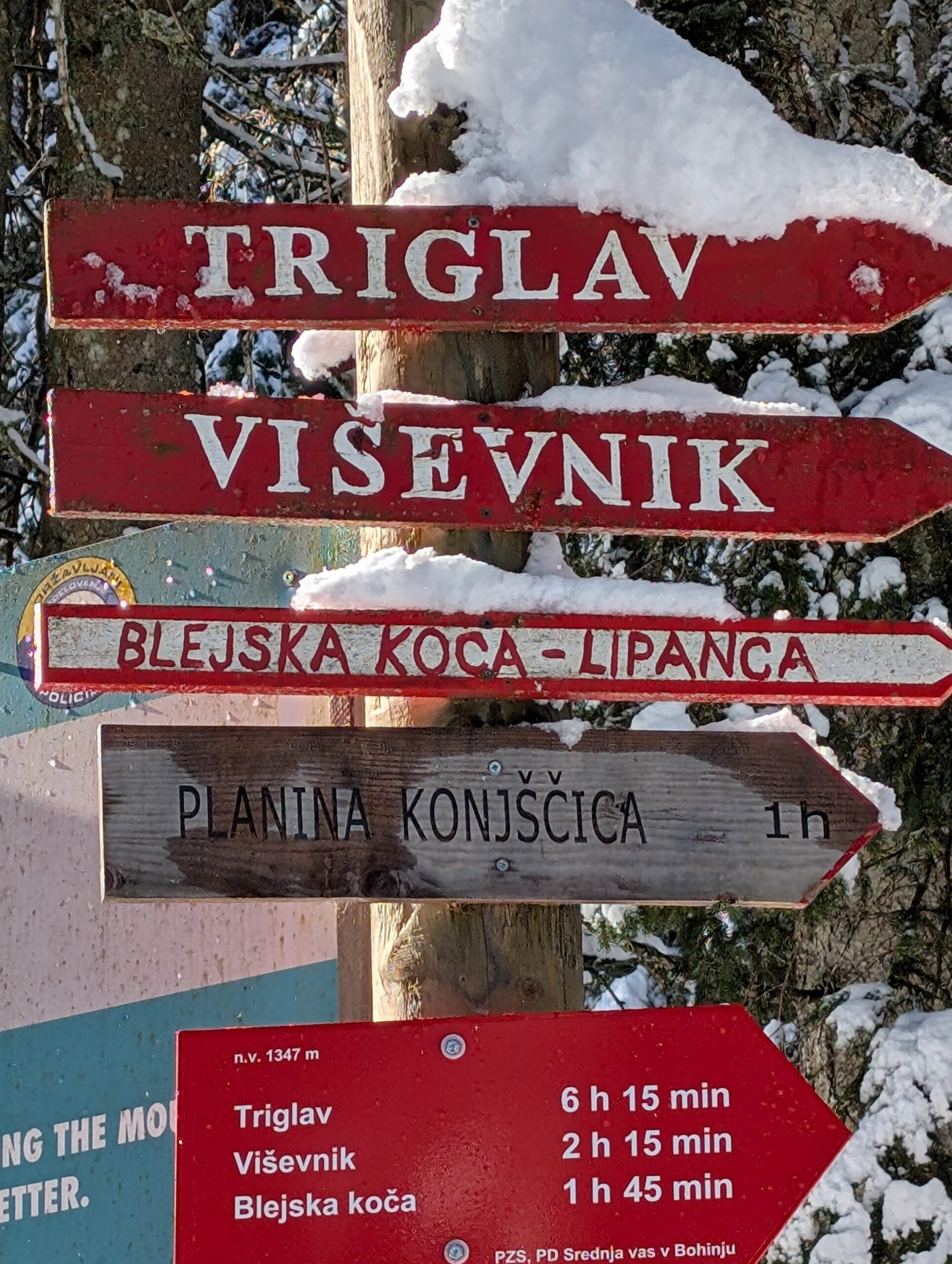 Le premier jour, après avoir garé votre voiture au parking gratuit de Rudno Polje, vous laissez les affaires inutiles dans le coffre et partez à pied avec un sac léger. La légère descente vers le refuge d’environ 45 minutes se fait tranquillement, à travers une belle forêt de sapins avant de s’ouvrir sur les sommets du parc national du Triglav. En hiver, le chemin est damé dans sa première partie puis tracé par les pas des randonneurs slovènes. L’ambiance est superbe.