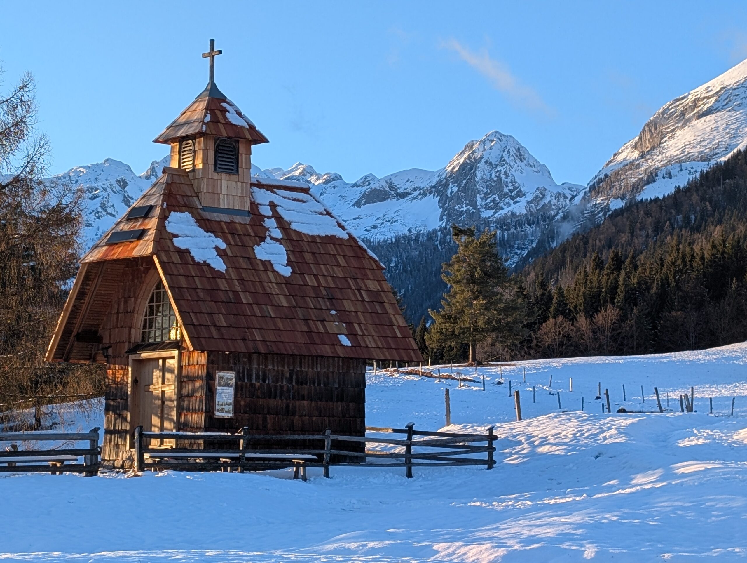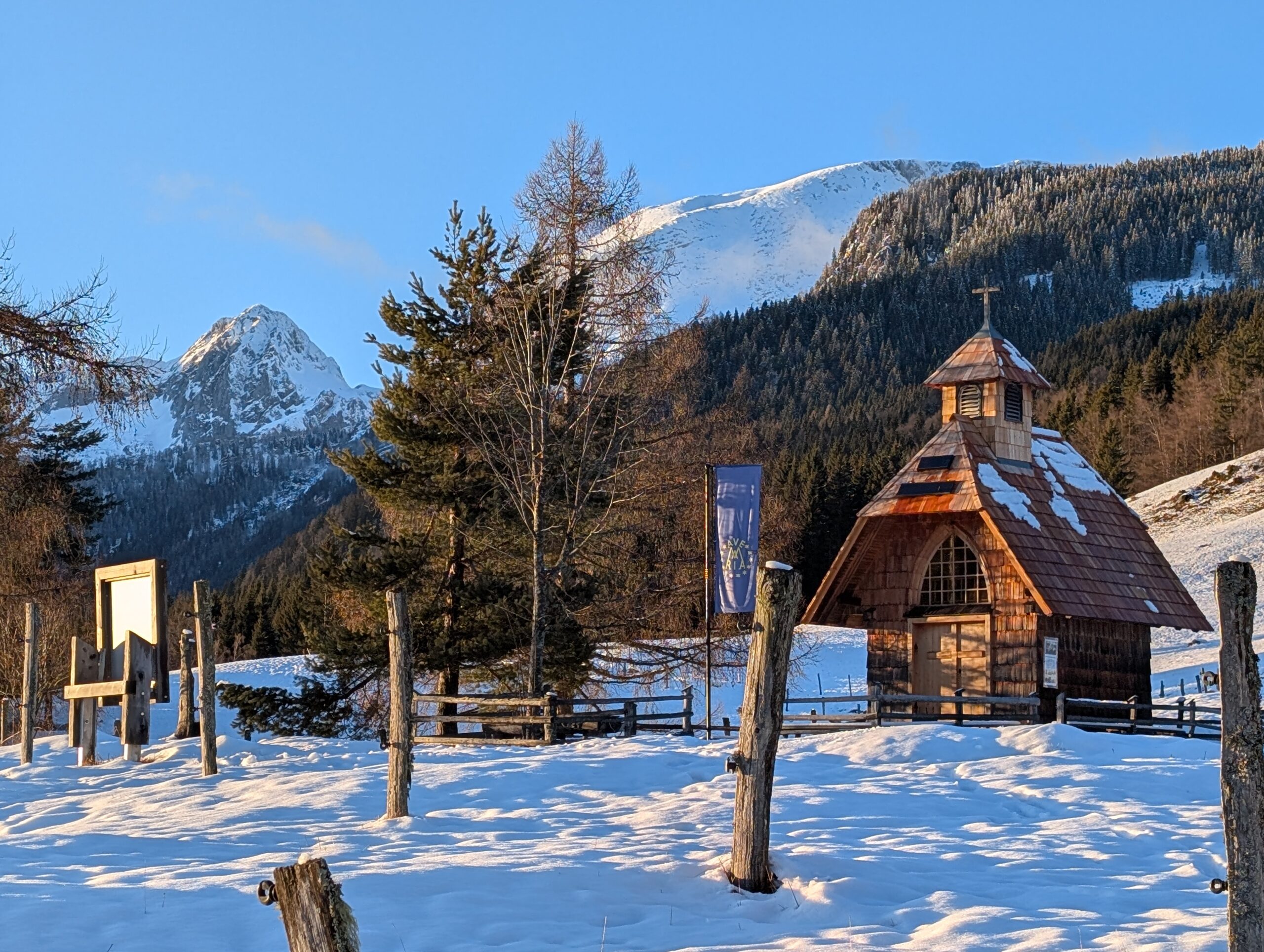 Le village se rejoint par une courte marche, ce qui change tout : dès votre arrivée, vous vous sentirez loin et ailleurs. Les maisons et la petite église en bois du village font voyager dans le temps. Quand l’église sonne délicatement ses cloches dans la neige, c’est magique.