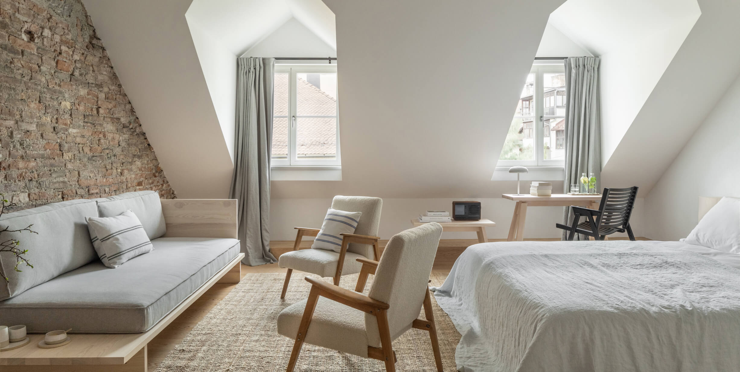 Vous verrez au moment de réserver que les chambres sont toutes différentes. Certaines offrent davantage d’espace ou un caractère plus intime, mais toutes partagent le même niveau d’exigence :