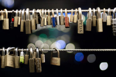 Les amoureux slovènes accroche un cadenas sur le pont qui traverse la Ljubljanica au coeur du centre-ville de Ljubljanica.
